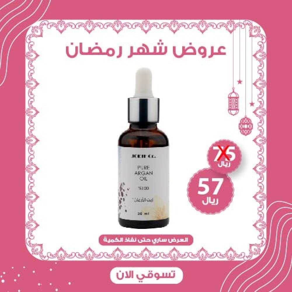 دلّلي شعركِ بتجربة فاخرة مع زيت الأرغان النقي للعناية العميقة بالشعر! هذا الزيت الذهبي المُستخلص من شجرة الأرغان المغربية يمنح شعركِ جرعة مُكثّفة من الترطيب والتغذية، مما يساعد في إصلاح التلف وتقليل التقصف. غني بالأحماض الدهنية الأساسية وفيتامين E، ويعمل على تحسين مرونة الشعر، وتقليل الهيشان، وإضفاء لمعان صحي يدوم طوال اليوم. مثالي لجميع أنواع الشعر، خاصةً الجاف والمتضرّر. استخدميه كعلاج ليلي أو كلمسة نهائية لحماية شعركِ من العوامل البيئية الضارة.